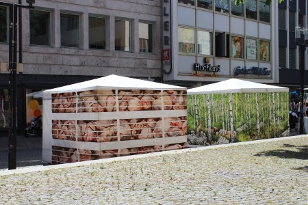 Meine beiden Pavillions „heute“ und „morgen“ (Öl auf PE-Plane) am 8. Juni auf dem Vegan Street Day in Stuttgart.